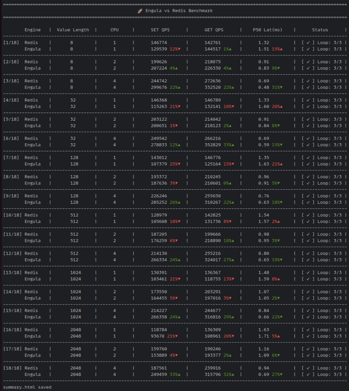 Test Duration: A total of 18 test groups (each executed for both Redis and Engula, three iterations per group) are automatically run. Total runtime is approximately 40 minutes.